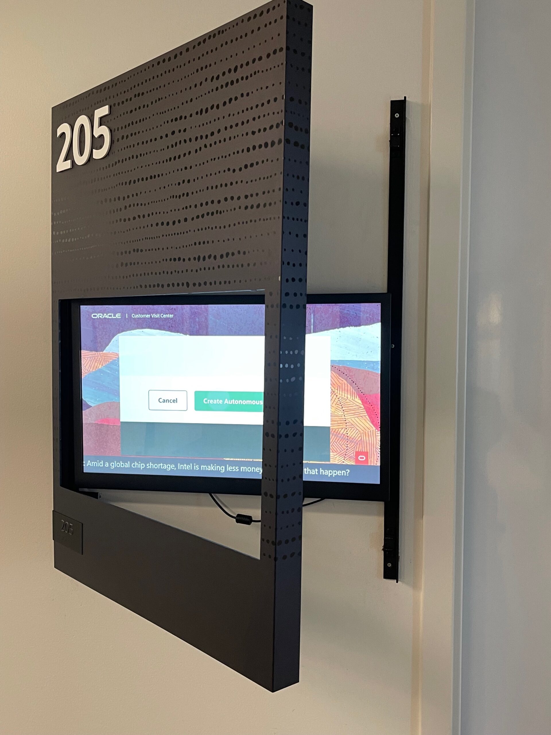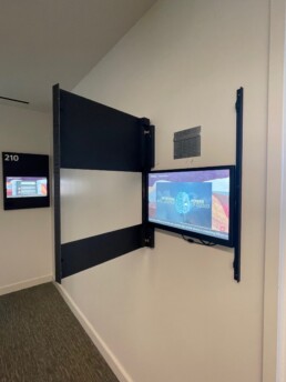 In 2022, Priority Architectural Graphics partnered directly with Oracle to deliver a custom signage and enclosure solution for their campus lobby in Redwood Shores, CA. As a design-build partner, Priority was tasked with reimagining the lobby’s monitor wall to create a modern, streamlined look that matched Oracle’s high-profile corporate environment. The result was a set of sleek custom enclosures that not only refreshed the aesthetic of the space but also provided highly functional concealment for accessories. These enclosures were carefully designed to also function as ADA-compliant room identification signage, ensuring the project enhanced both accessibility and visual impact within the lobby.