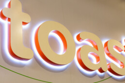 When Toast, an innovative company with a bold personality, decided to expand its San Francisco offices, they needed a signage partner who could match their energy and precision. That’s where Priority Architectural Graphics came in. For this project, we brought their brand to life — literally — by crafting a vibrant, illuminated logo treatment that radiates warmth and personality. The playful toast icon shines bright, welcoming guests and employees alike with a glow that feels both modern and nostalgic.