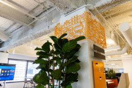 But the real magic? The intricate, lace-like column mounts that we engineered to support the installation. These detailed structural elements were custom fabricated to blend seamlessly with the aesthetic, balancing craftsmanship with structural integrity. Like a perfectly plated dish, every detail was intentional — from the invisible fastenings to the refined edges that keep the focus on Toast’s unique brand. At Priority Architectural Graphics, we understand that as brands grow and expand their corporate footprint, their workplaces need to reflect both their culture and their ambitions. This project is a perfect example of how our design-build approach helps companies stay on brand while creating one-of-a-kind environments that stand out.